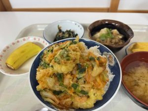 12/4(木)の献立は「かき揚げ丼セット」でした。