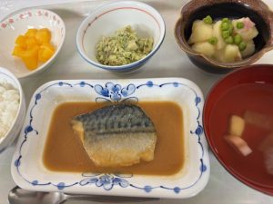 1/19(月)の献立は「鯖の味噌煮定食」でした。