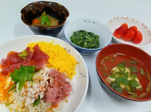 2/10(火)の献立は海鮮ちらし寿司セットでした。