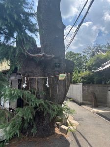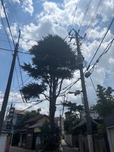 このヒマラヤ杉は、台東区の保護樹林、景観重要樹木となっています。2019年の台風で枝が折れ、剪定されました。それまでは、巨大な傘のような杉の木で、樹高も20メートル以上の巨樹でした。