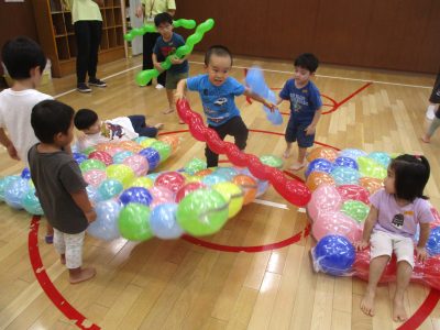 ▲絵の具遊び                      ▲風船遊び