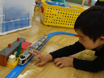 ▲プラレール                      ▲木の汽車作り