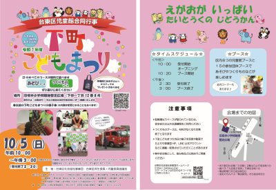 社会福祉事業団(台東区の8児童館)と台東区民生委員・児童委員協議会の共催行事『下町こどもまつり』を開催します。