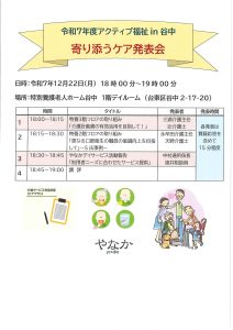 令和7年12月22日(月)18時00分から、やなかホームで久しぶりに「寄り添うケア」発表会を開催しました。