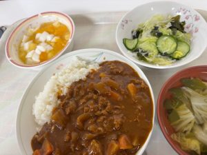 第二部は、管理栄養士監修「施設の食事を食べてみよう会」で、今回の献立は、「ハヤシライスセット」でした。今回の献立も大好評でした。