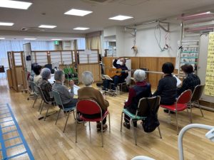 第一部の「みんなで歌おう会」in谷中は、「ギターとピアノに合わせて歌いましょう!」