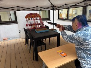 昼食終了後、アンコール特別企画「射的で介護予防」を開催しました。